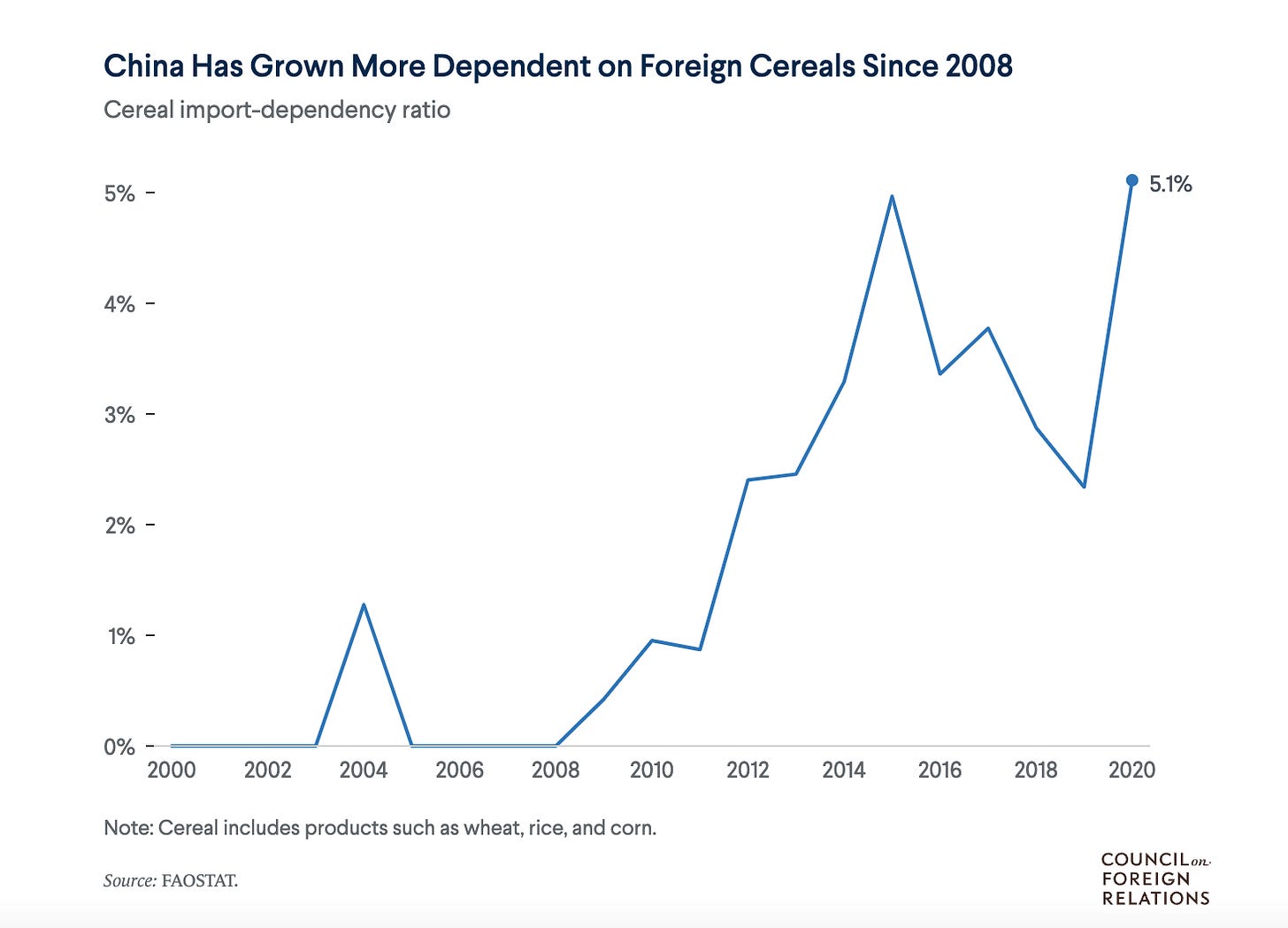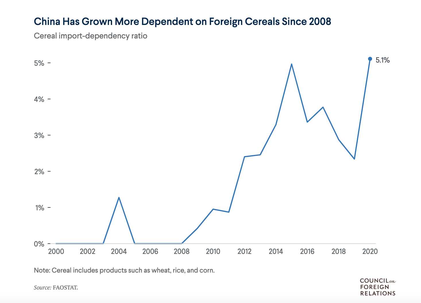 Xi also said that he wants China to end its reliance on imports of grain and manufactured goods. “In case we’re short of either, the international market will not protect us,” Xi declared. Li, the outgoing premier, emphasized the same point in his annual government “work report” on the same day, saying Beijing must “unremittingly keep the rice bowls of more than 1.4 billion Chinese people firmly in their own hands.” China currently depends on imports for more than a third of its net food consumption.
