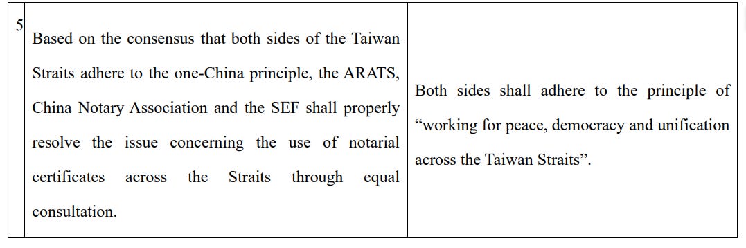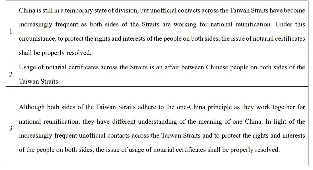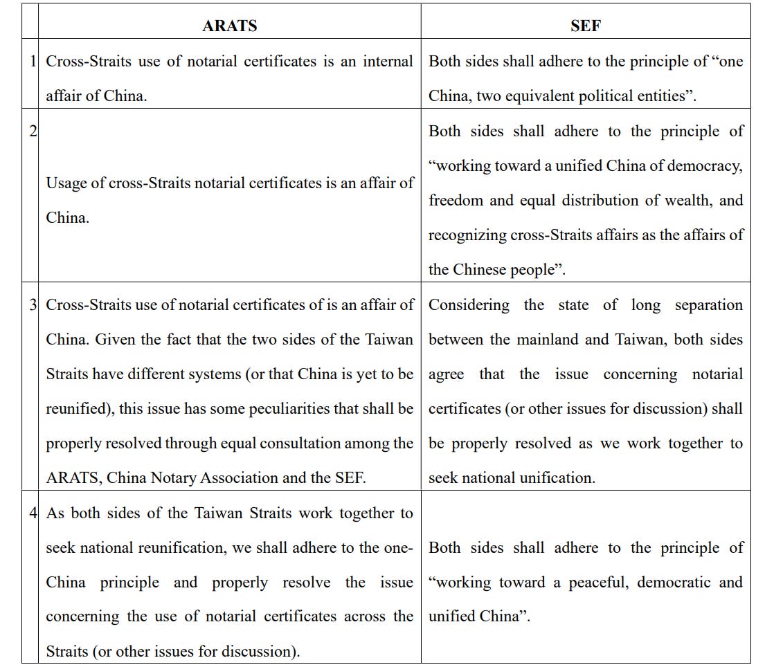 Source: ARATS (2005). Historical Documentation of the 1992 Consensus. Beijing: Jiuzhou Press.