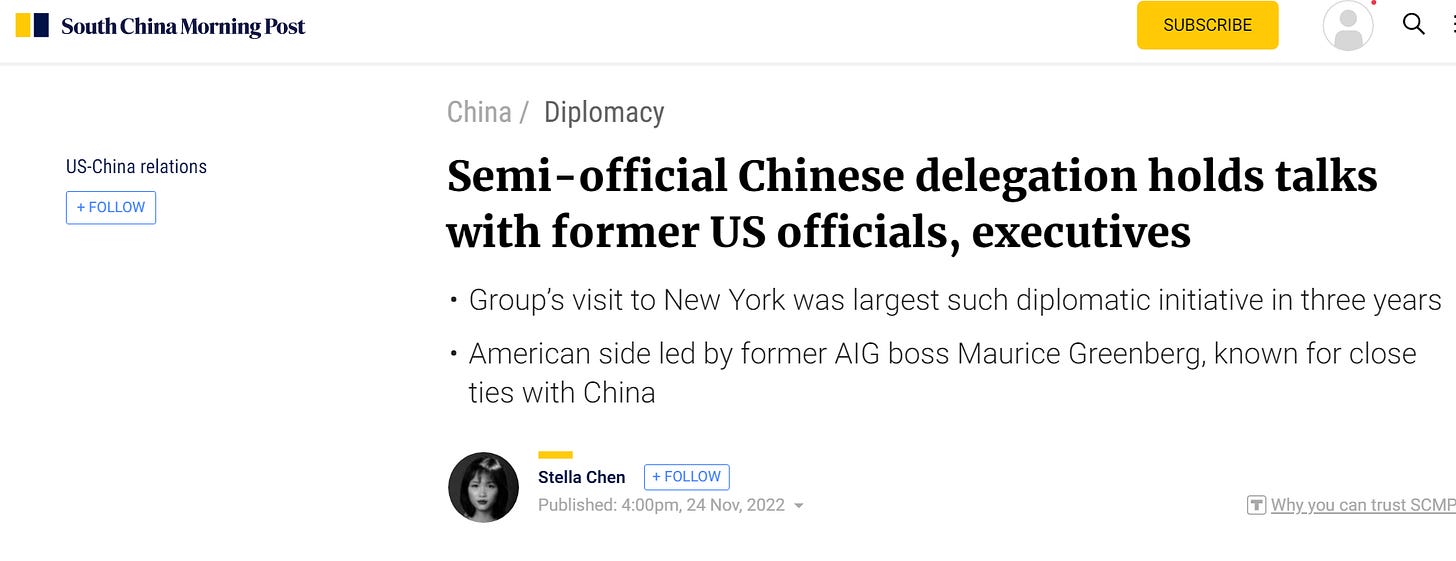 Wu: It was Mr. Greenberg who first came up with the initiative. This July, he published an article in The Wall Street Journal. In that article, he said he would establish a group to work on how to improve China-U.S. relations.