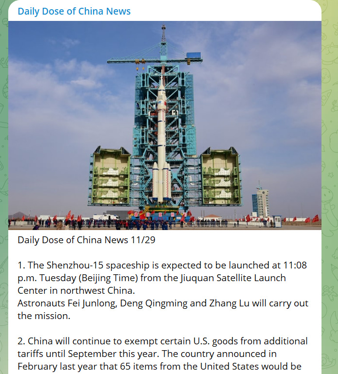 Ginger River’s friend Tsong Wong has created an informative telegram channel named "Daily Dose of China News" for China Watchers. Ginger River encourages you to subscribe to Wong’s channel to get daily news briefings on China.