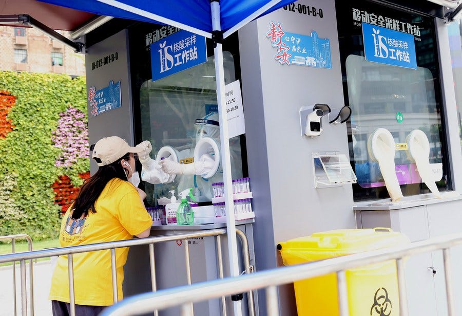 For all residents in Shanghai to take public transport or enter public places, they must have a negative nucleic acid test within 72 hours, or a sampling registration within 24 hours. People in Shanghai now can do free nucleic acid tests conveniently in the make-shift testing booths which scatter all over the city.