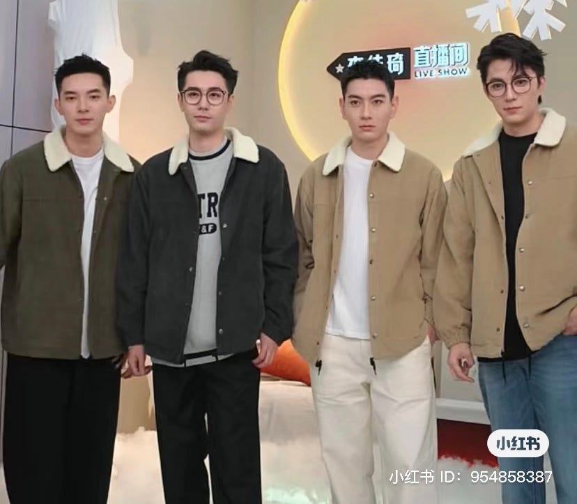 Compared to their main roles of modeling and promoting products, the physiques and looks of “Li Jiaqi’s F4” are clearly a stronger hook. They sporadically break into a "kiss kiss gesture dance," displaying sass and sweetness to the viewers. Meanwhile, poor Li Jiaqi stands beside them as the "picked-on" presence, confessing, "I am too short and have too big a head next to them."