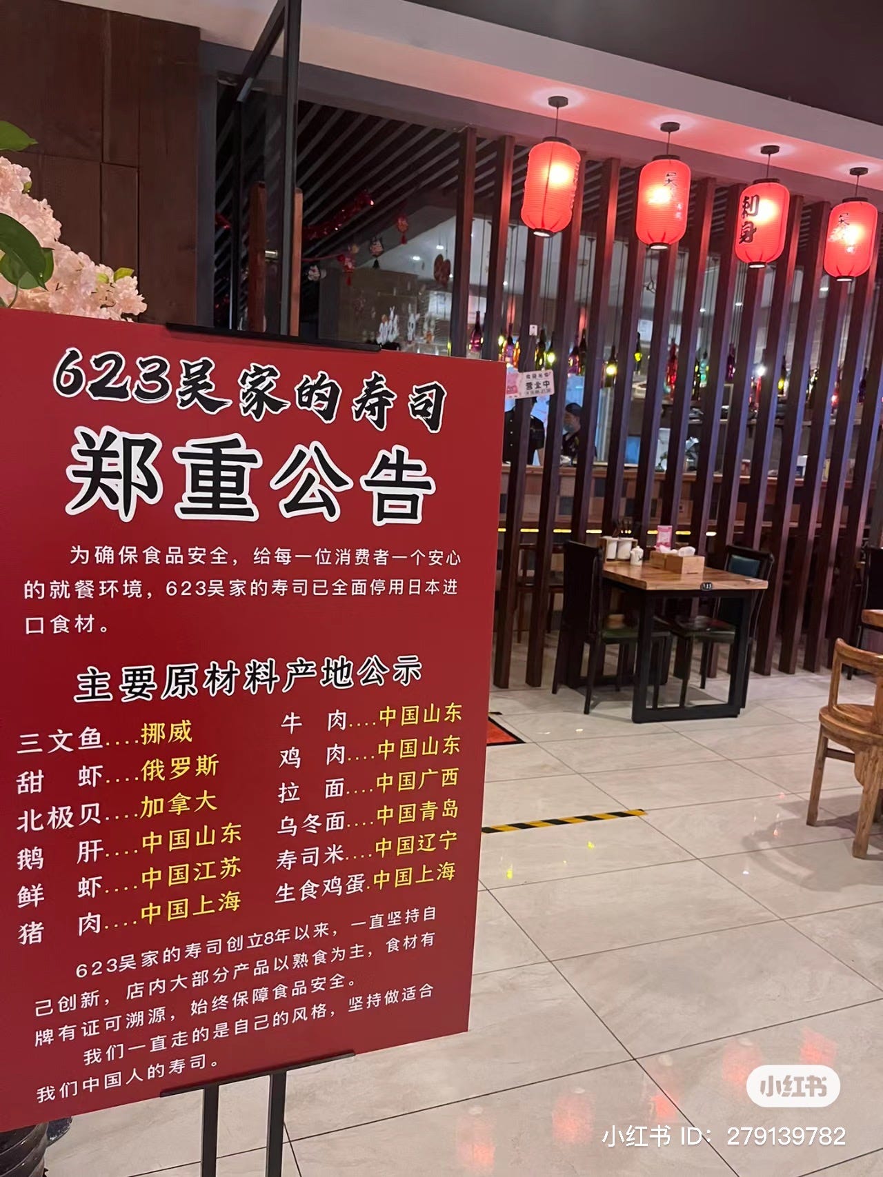 很快,网络上出现了对于“中国日料店会不会大批量倒闭”的讨论。在消费者的聚焦下,越来越多日料店纷纷发出公告,表明自家原材料来源并非日本。也有一些部分使用日本进口海产品的高端日料店发布食材产地调整公告,确保所有食材符合国家食品安全标准。